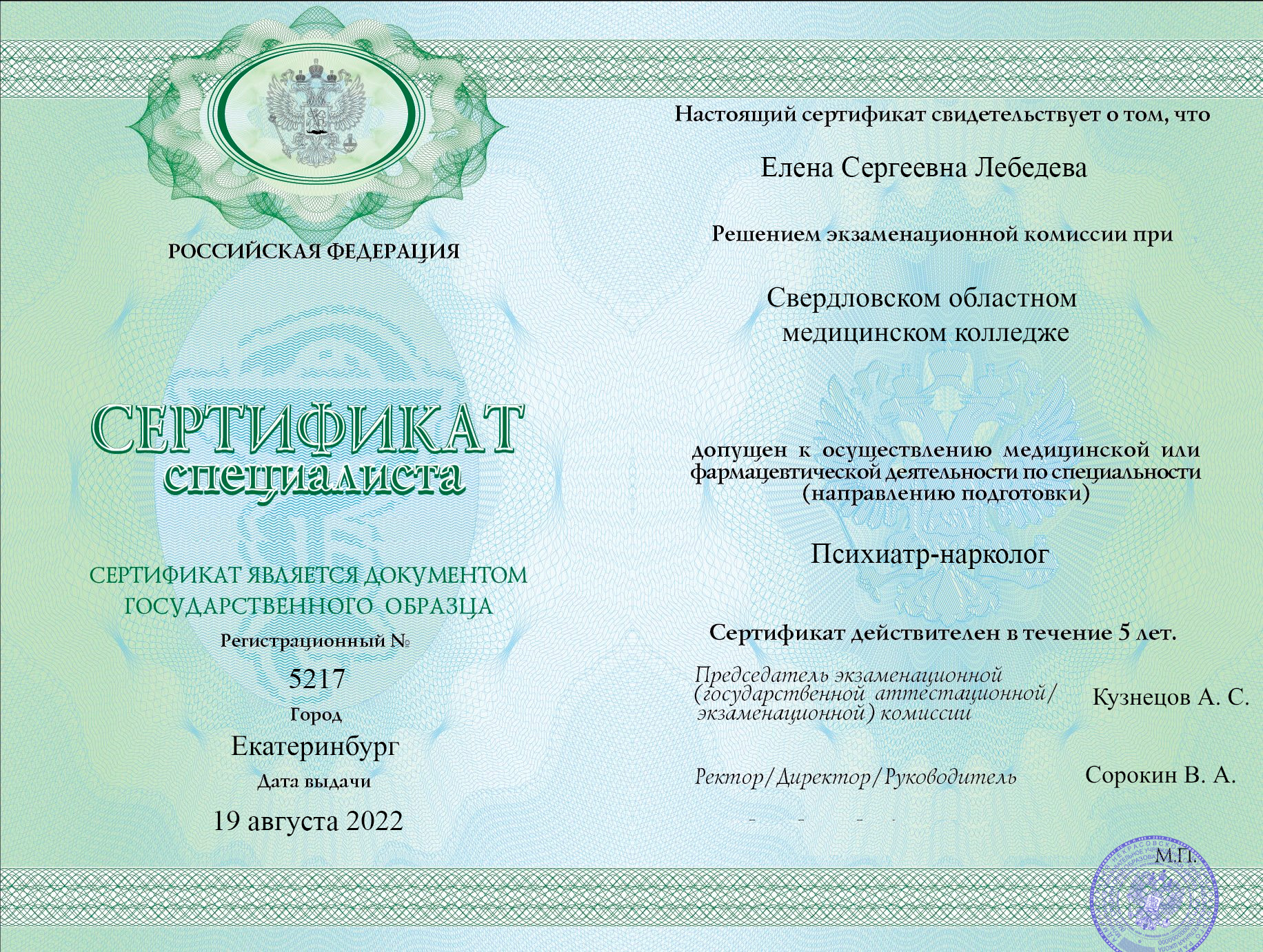 Елена Сергеевна Лебедева врач нарколог клиники доктора Стукаловой в Плавске